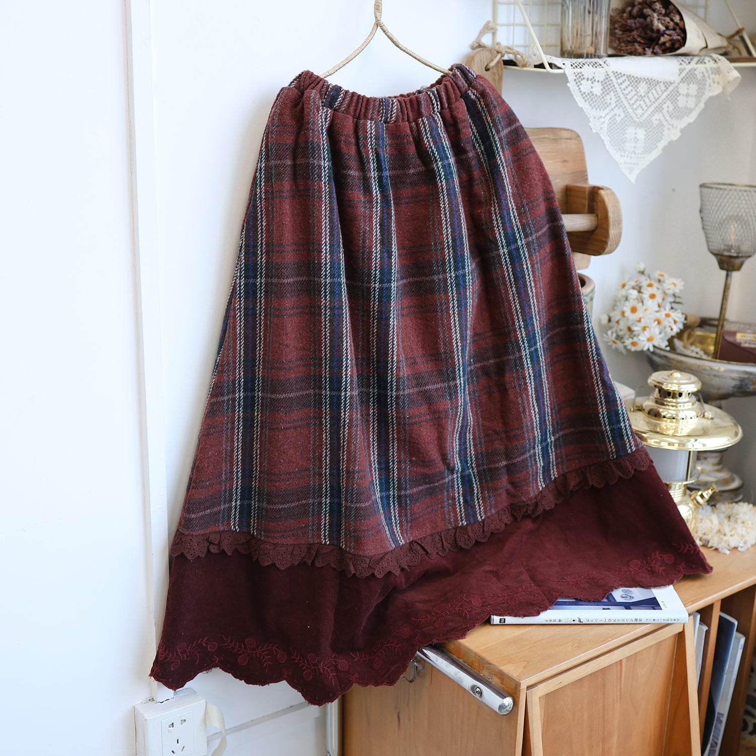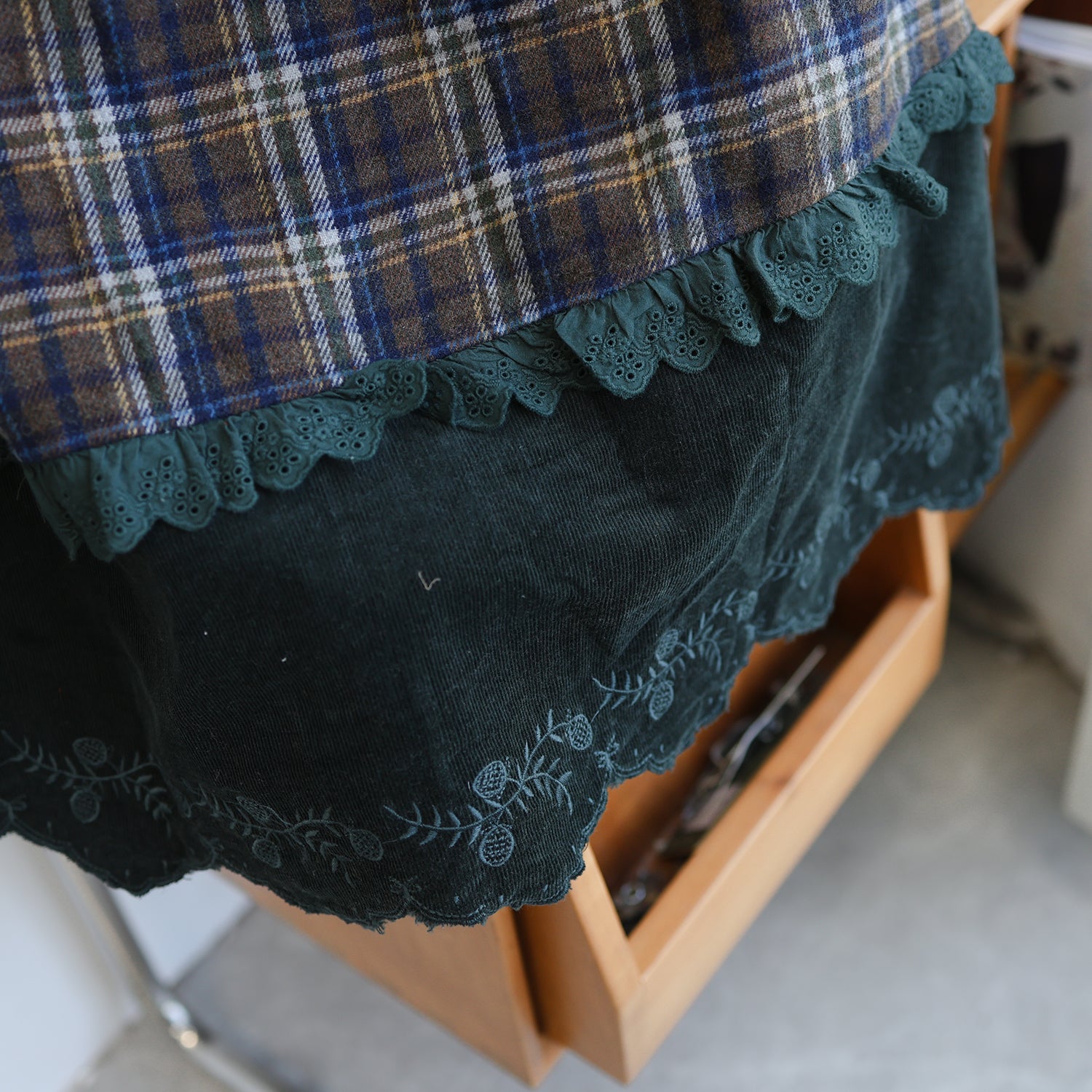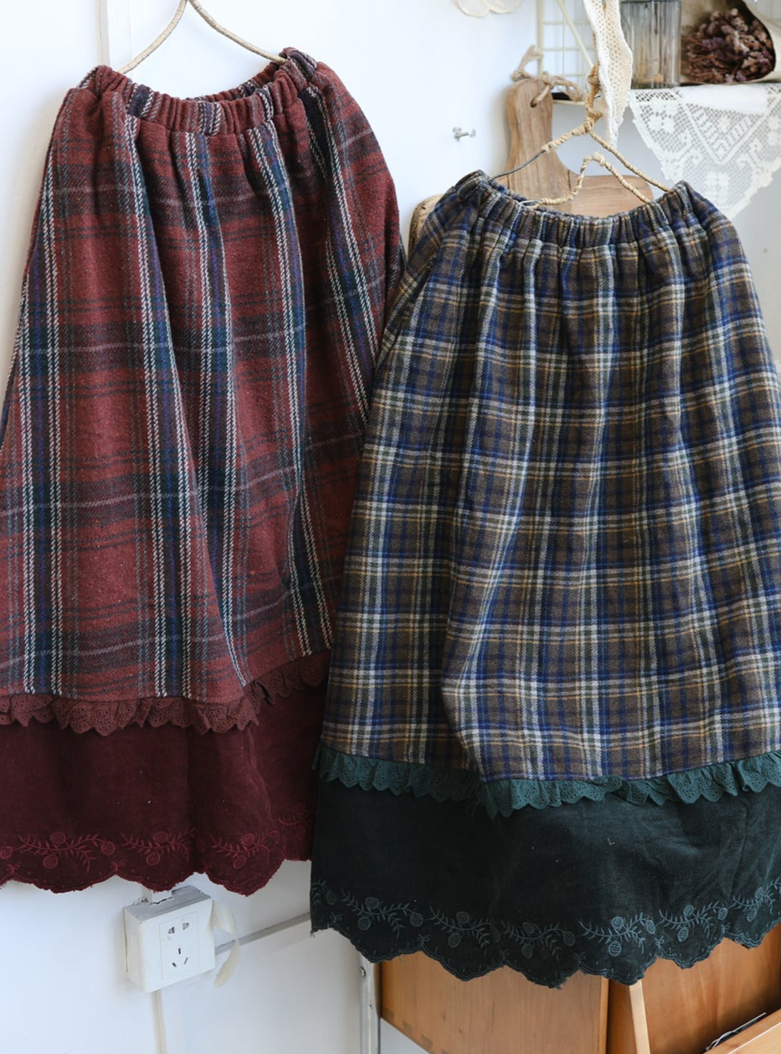 Forest Girl Plaid Embroidered Skirt